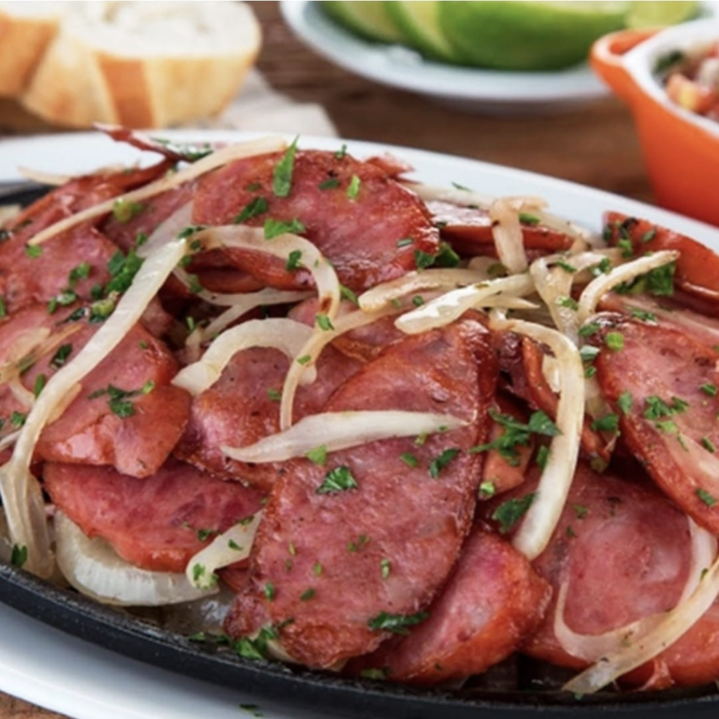 600 gramas de costela, arroz, feijão, mandioca e farofa